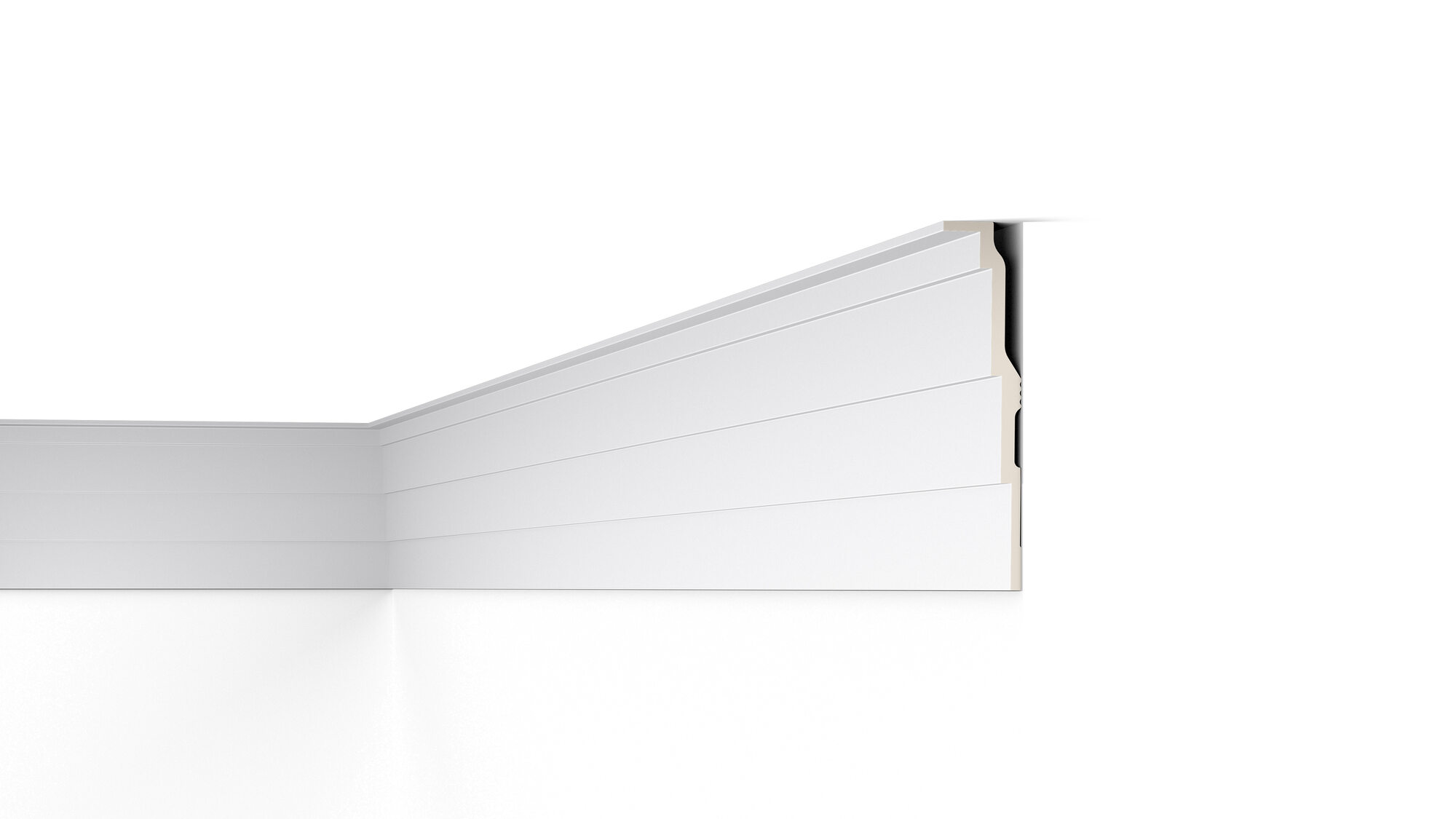 Nowoczesna, dekoracyjna listwa przysufitowa wykonana z wysokiej jakości materiału pozwoli dodać elegancji i charakteru zarówno klasycznym jak i nowoczesnym wnętrzom. Wykonana z dbałością o szczegóły, niezwykle łatwa w montażu pomoże ukryć drobne niedoskonałości na styku ścian i sufitu. Listwa sprawdzi się również doskonale jako maskownica karnisza.