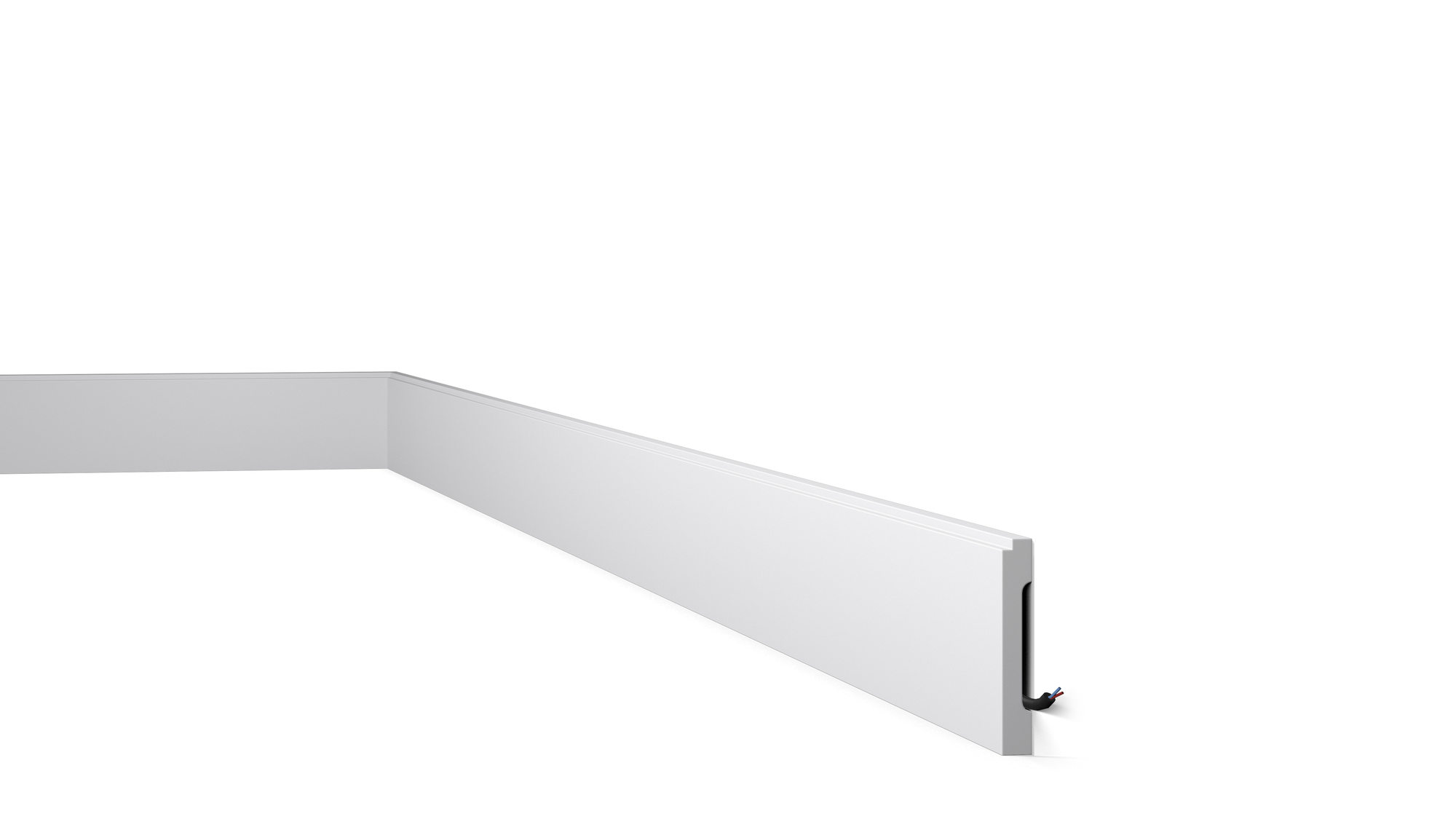 Wysokiej jakości dekoracyjna listwa przypodłogowa pozwalająca w szybki sposób efektownie wykończyć wnętrze na styku ściany i podłogi maskujac nierówności i ukrywając przewody elektryczne.