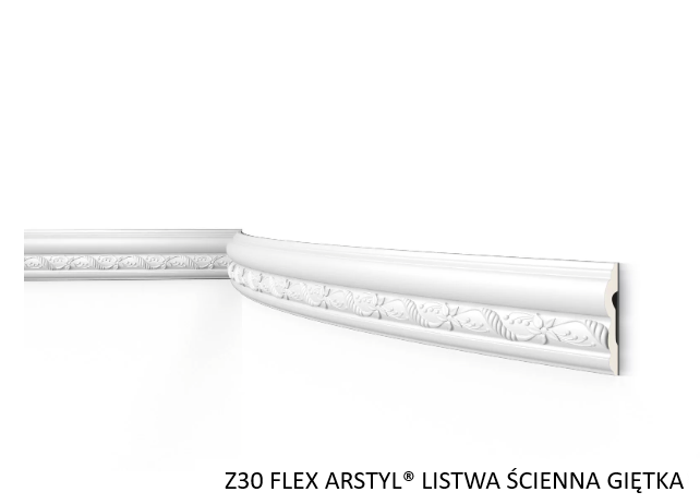 Jeśli Twoje wnętrze jest utrzymane w stylu klasycznym, możesz wybrać listwy sztukateryjne FLEX z eleganckimi zdobieniami i detalami, które nadadzą pomieszczeniu szlachetny i tradycyjny wygląd - np. listwę ścienną giętką Z30 FLEX ARSTYL lub Z1 FLEX ARSTYL, czy listwę giętką przysufitową Z19 FLEX ARSTYL.