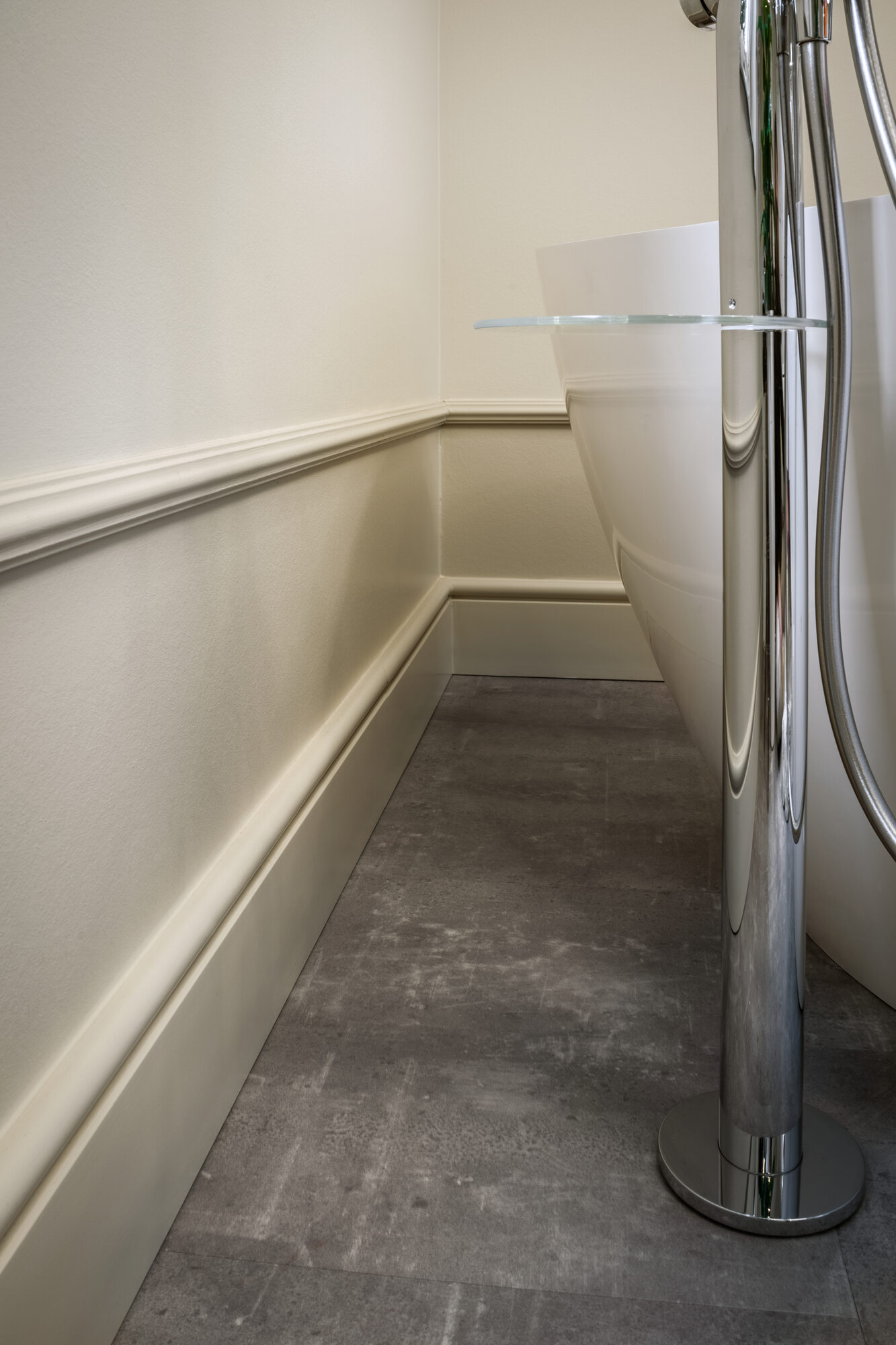 Tutaj, z kolei, zastosowana została listwa przypodłogowa FL14 oraz nad nią w kilkucentymetrowym odstępie, jako przedłużenie, listwa ścienna WL7.